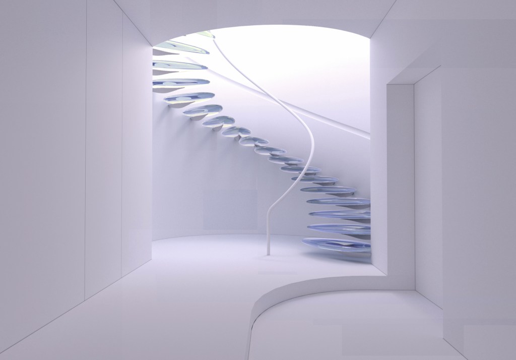 Eh già, come i cantavano i mitici Led Zeppelin, non tutto quello che luccica è oro: questo progetto mastodontico che ci ha visti impegnati oltre un anno però ci si avvicina molto. La committente (una designer Giapponese con studio a Tokio, New York e Londra e che con il nostro materiale ha già realizzato alcune opere d’ arte) ha commissionato al nostro partner esperto nella lavorazione in CNC ad altissima precisione una scala davvero folle. La struttura, dal diametro di quasi 5 metri, verrà annegata integralmente nel getto in calcestruzzo del corpo scala; dal getto usciranno solo questi bracci in ergal fresati con precisione centesimale su cui si inseriscono ad incastro e senza nemmeno una vite 22 scalini in PMMA nanocaricato da 110mm di spessore oltre ad un generoso ballatoio sommiate.